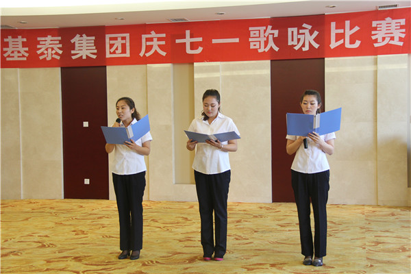 本次歌詠比賽分為語言類和歌舞類。李亞光總經(jīng)理為“七一”慶典活動致辭,之后,隨著一曲高昂的《東方紅》唱響,歌詠比賽拉開帷幕。首先,所有人員集體進行了莊嚴的入黨宣誓,一句句莊嚴的誓詞,深入人心。其次,來自基泰建設公司辦公室、財務部、經(jīng)營部、會議中心、東沙新區(qū)、白鷺煤礦的11個節(jié)目陸續(xù)登臺亮相。振奮人心的歌曲《習主席寄語》、《中華好兒孫》、《我的中國心》、《草原上升起不落的太陽》等心中頌歌;深情的詩朗誦《七月的航船》、《黨的頌歌》、《黨啊,我的母親》;激情的舞蹈《北京的金山上》、《七月火把節(jié)》……,經(jīng)過評委們認真評判,白鷺煤礦的詩朗誦《黨啊,我的母親》獲得語言類一等獎,基泰建設公司財務部舞蹈《北京的金山上》獲得歌舞類一等獎。