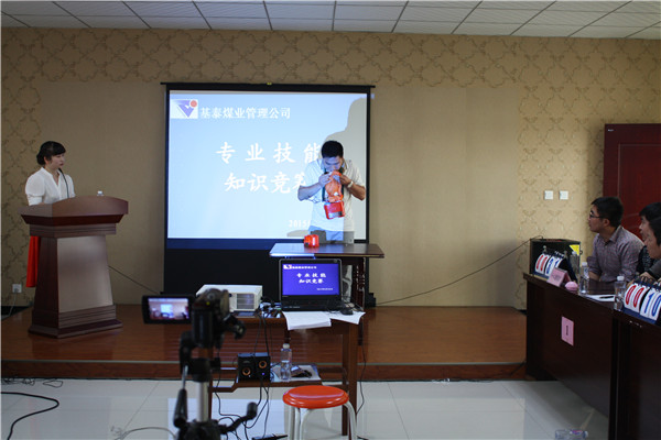 基泰煤業(yè)公司副總經(jīng)理劉萬(wàn)聰為本次活動(dòng)致辭。此次競(jìng)賽分為兩個(gè)階段:第一階段知識(shí)競(jìng)賽,第二階段技能競(jìng)賽。第一階段分為三個(gè)環(huán)節(jié):第一環(huán)節(jié),個(gè)人必答題,共進(jìn)行12輪,每輪每組選手必答1道題;第二環(huán)節(jié),搶答題,共進(jìn)行20個(gè)搶答題。第三環(huán)節(jié),風(fēng)險(xiǎn)題,進(jìn)行2輪風(fēng)險(xiǎn)題。選手采取選擇形式答題,分1分、2分、3分三種題型,由參賽隊(duì)自行選擇。第二階段:專(zhuān)業(yè)技能測(cè)試,包括三個(gè)比賽項(xiàng)目:正確配戴自救器、甲烷檢測(cè)儀的正確使用、煤塵檢測(cè)儀的正確使用。