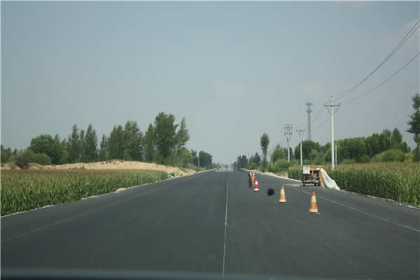 工程于2016年3月25日正式開工, 于7月10日完成了全部瀝青面層鋪設(shè)工程,目前工程已施140多天,已完工程額占合同總價(jià)的90%,只剩部分收尾工程 ,主要包括安全設(shè)施工程(標(biāo)識(shí)標(biāo)志標(biāo)線、路標(biāo)等)、環(huán)保綠化工程、攔水帶等,預(yù)計(jì)8月20日前全部竣工。