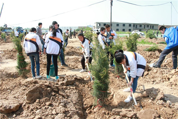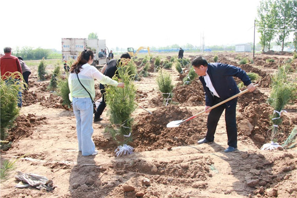 上午9:30分,植樹活動正式開始。高莊鎮(zhèn)政府相關(guān)干部、基泰集團全體人員與師生們一起揮動鐵鍬培土,提水澆灌樹木,一片忙碌景象。經(jīng)過一上午的辛勤勞動,近三百棵雪松整整齊齊的屹立在壽平村的土地上。盡管當天氣溫有點高,但是高不過每一個參與者的熱情,當大家看著自己親手種下的樹苗亭亭玉立于眼前時,所有的汗水和勞累都被拋之腦后,換來的無盡的欣慰和歡聲笑語。