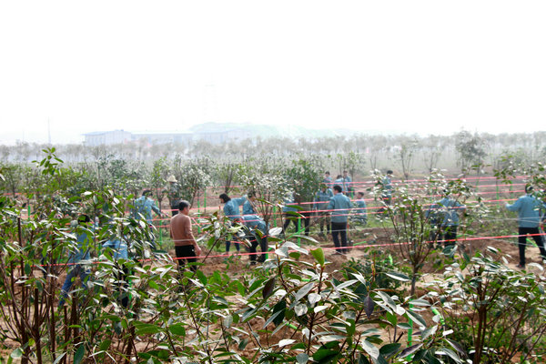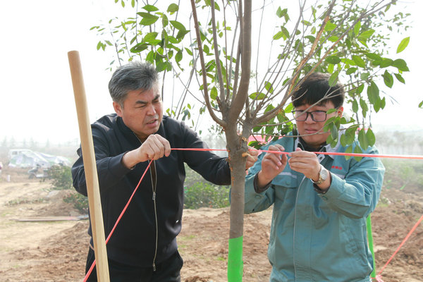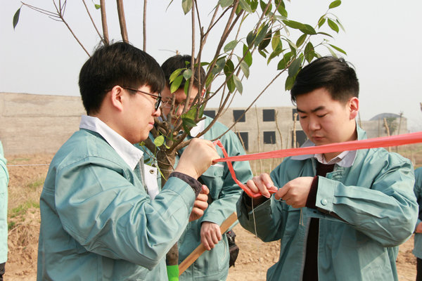 大家用繩子打好格子,保證樹(shù)木橫平豎直,整整齊齊,端端正正,如同我們基泰人一樣!