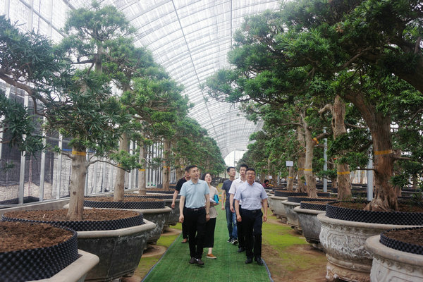 蘇亞文一行首先來(lái)到基泰都市新農(nóng)業(yè)優(yōu)良苗木花卉種植基地,考察了日本進(jìn)口羅漢松種植情況,并對(duì)集團(tuán)聚焦國(guó)際珍稀花木繁育,開(kāi)展景觀應(yīng)用研究表示肯定。