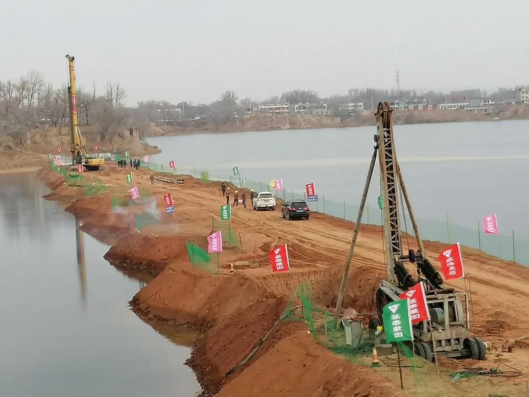 目前,土石方工程完成65%,約68.5萬方,涵洞完成71%,共27道;楊家灣水庫大橋筑島圍堰已完成,正在開始樁基鉆孔施工。