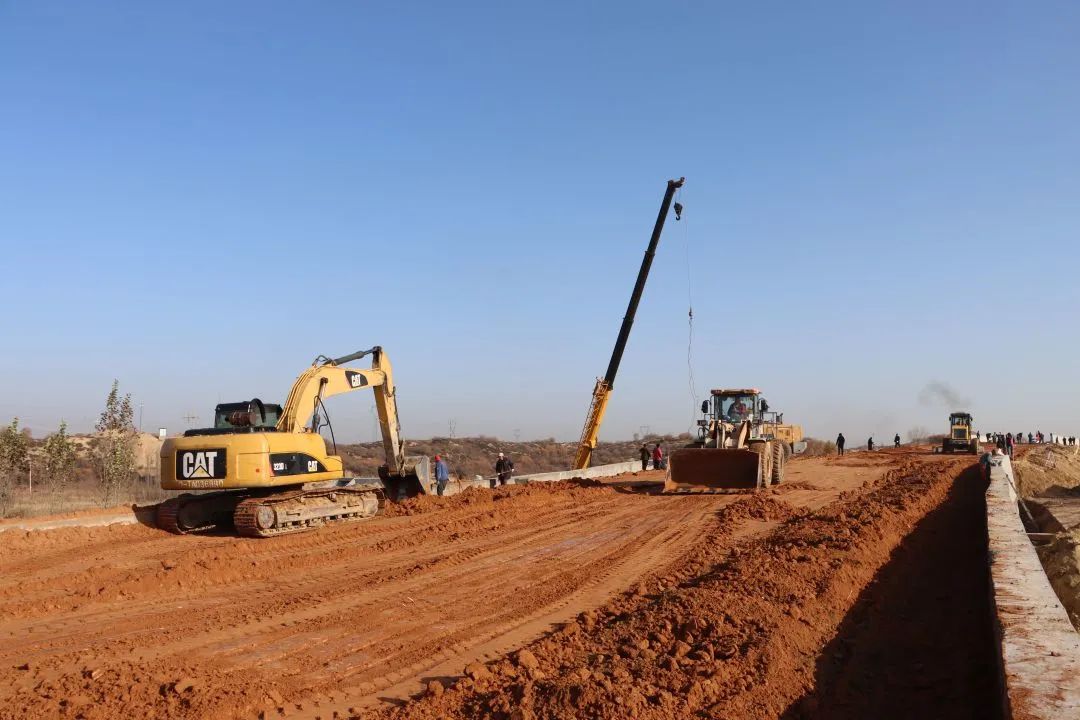 在項(xiàng)目建設(shè)現(xiàn)場,施工人員忙個不停,吊裝機(jī)、挖掘機(jī)、裝載車、壓路機(jī)等設(shè)備來往穿梭在工地上,機(jī)械轟鳴,工地呈現(xiàn)出一派熱火朝天的施工景象。