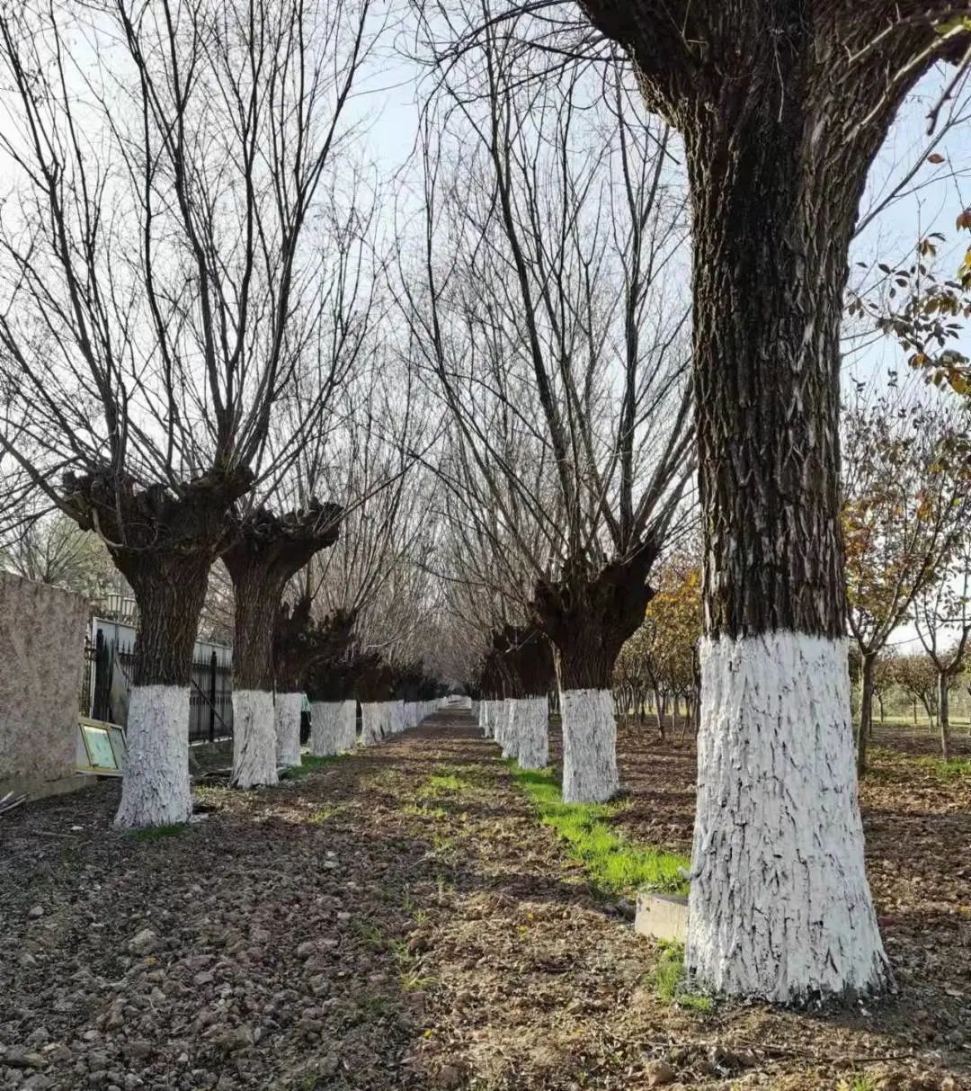 樹木涂白在秋末冬初進(jìn)行比較好,此時(shí)在樹干上均勻涂抹涂白劑,可以減少水分和熱量的蒸發(fā),起到保溫保濕的作用,還能夠反射光照,避免灼傷葉片,破壞細(xì)胞結(jié)構(gòu),樹皮發(fā)生干枯、開裂、脫落的現(xiàn)象。在樹木涂白的時(shí)候,必須要在溫度高于零攝氏度的時(shí)候進(jìn)行,避免涂白劑不能均勻覆蓋在樹干表面,甚至結(jié)冰冰傷樹體,無法達(dá)到預(yù)期的效果。
