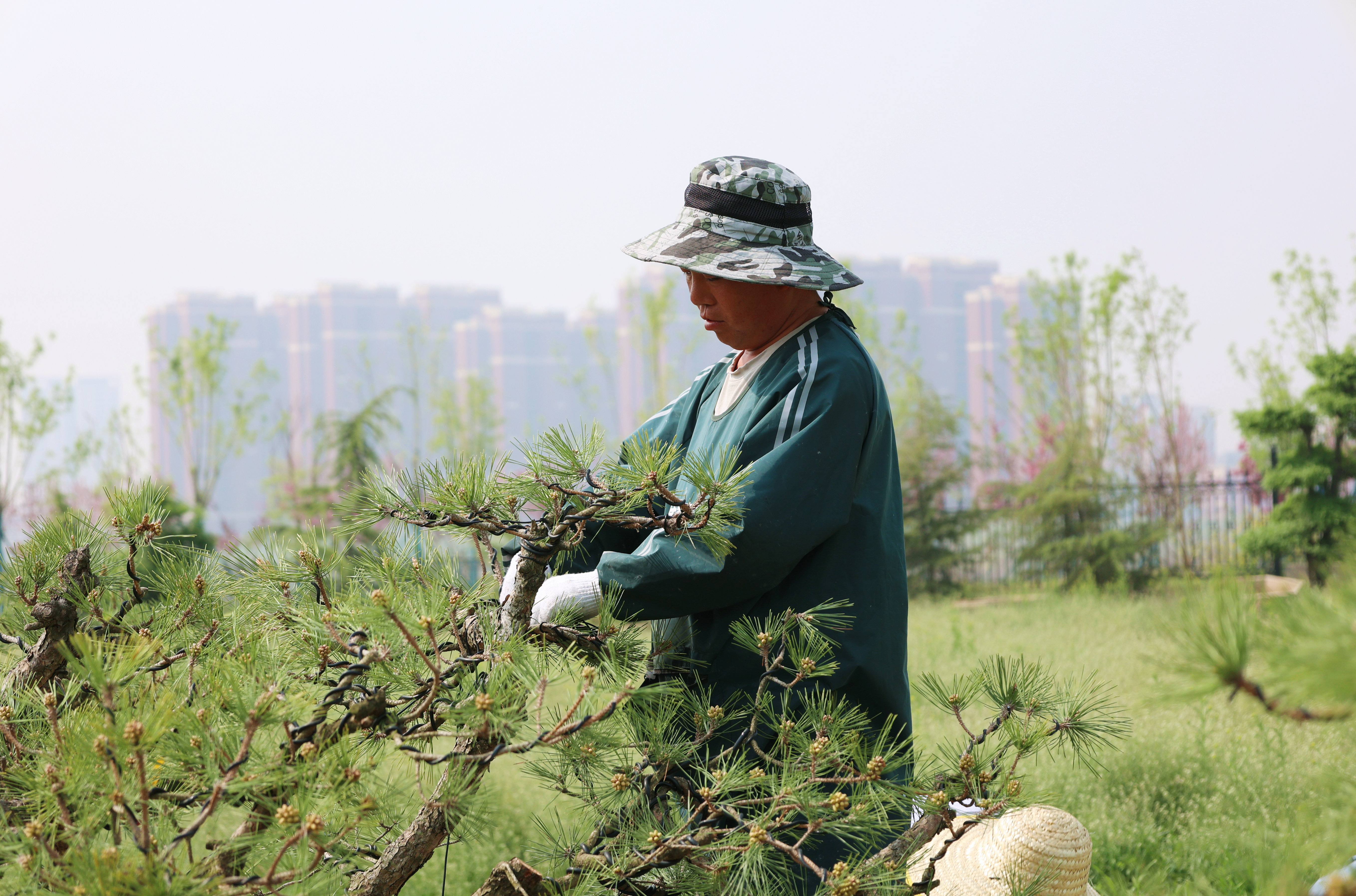 三到五月上旬是適宜黑松修剪的時(shí)節(jié),園藝師們運(yùn)用鋁絲蟠扎工藝,巧妙地給黑松開(kāi)胚,定向培養(yǎng),使每一棵黑松都呈現(xiàn)出獨(dú)特而優(yōu)雅的姿態(tài)。